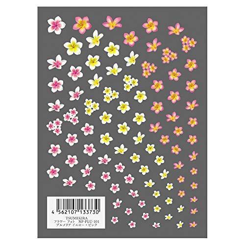 TSUMEKIRA (Tsumekira) nail seal Flower photo Plumeria yellow-pink NP-PLU-101 1 sheet multi-color